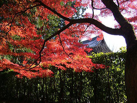 かなり広い境内に、何本くらいの楓の樹があるのか。それも相当年数の経った樹ばかり。さっき見てきたばかりのいかにも京都の寺の庭園という感じとまるで違う。寺だから本堂や塔などがもちろんちゃんとあるのだけど、境内には無造作に楓や銀杏や、杉か檜かちゃんと見なかったけど針葉樹が植わって、枝を差し交わしている。