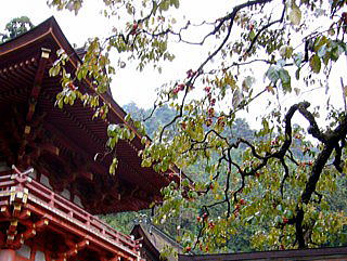 2008年11月21日(金) 曇り 後 雨 後 曇り 予報では、午前中晴れ、午後曇り、ところにより雨となっていた。 山沿いは大体‘ところにより’の中に入るんだよね。我が家の辺りもいつも、もれなく‘ところにより’の予報が当たる。 琵琶湖畔、比叡山山麓とくれば、‘ところにより’の範疇だろうと覚悟しつつ、比叡山から日吉大社へまわる予定だった。 滋賀の坂本から日本一距離の長いケーブルカーに乗って一度登ってみたかった。頭の中は真っ赤に紅葉した森の中をケーブルカーに乗っている自分を思い描いて、期待が高まる。 電車が1回乗り換えだけのJRを使い、タクシーがいやな顔をしない程度に距離がある比叡山坂本駅に着いてみると、空はどんより曇り、程なくぱらぱら降ってきた。まだ10時よ。降るのがちょっと早いじゃない。 滋 賀 院 門 跡