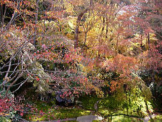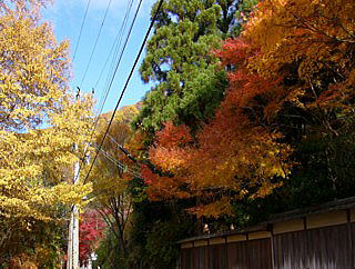 | 門を入って石段を上ると、みごとな黄葉と紅葉 |