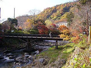 川沿いに赤や黄色のカエデがきれい。しばらく散策したいとタクシーを降りた。きれいきれい。