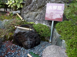 コウヨウザンと呼ばれる大木 上に水琴窟がある石段