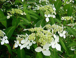 ここから先には、ガクアジサイといわれる品種が多く、アジサイの原種シチダンカや昔から各地にあるアジサイ類が植えられています。