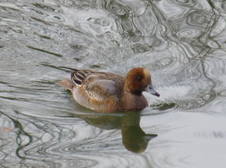 いつもバンやカモを見かける池ですが、風は初めて。今日は、ハシビロガモ、ヒドリガモ、カルガモが少しずついました。