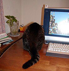 | 大好きなしっぽたたきを待つ態勢、注意力は後ろに集中、証拠は耳 |