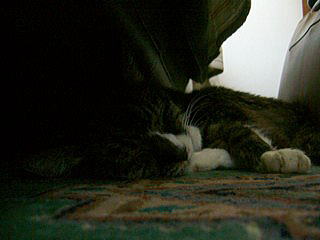 ソファの下へ ここはまだ分るけど・・・ かばんの陰で頭はソファの下 扇風機を枕にからだは完全にねじれてる、年寄り猫でもさすがに柔らかいねぇ 居心地悪そうでごめん。ソファが居場所だった期間は短かったね。ピーターは苦手だけど、人間の熱中症予防のため、居間のエアコンを午後からずっと除湿でもつけっぱなしにしているから、風が直接あたらない場所を探してソファの下辺りをうろうろ。まだあと1ヵ月は続くよ。いっしょにがんばろうな。
