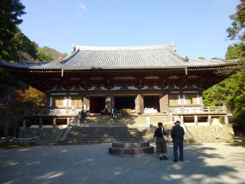 ![]() 京都市の北西、昔から紅葉名所の一つ高雄の神護寺にやってきましたが、 バスを停めた駐車場が川の対岸、少し高いところにあって、坂になった階段をかなり下りた後、 寺への石段に取りつくことになり、添乗員さんがしきりに、400段あります、ゆっくり、途中で休みながら、 などと中高年の多い参加者に呼びかけていました 。 橋のたもとの楓も既に散ってしまっています。 これから数百段の石段を上った先に見ごろの紅葉は望めそうにありません。 ![]() 右写真、楼門が見えてきました ![]() ![]() 明王堂横の石段をもうひと踏ん張り上って、金堂を目指します 大分前からしくしく痛くなっていた左ひざが気になりますが、きっともうここへ来ることはないでしょう。 最初で最後の神護寺金堂参拝、サポーター効果を信じ、どうしても見てみたい強い気持ちでエンヤコラ上りました。 ![]() 今までに何度も紅葉時に訪れている神護寺ですが、金堂参拝は初めてです 今までは、明王堂から左奥へ進んで、清滝川めがけてかわらけを投げていました そのまま下りて、川に沿って歩き、清滝へ短いハイキングをしたものです ![]() 金堂には国宝の薬師如来立像、重文の日光月光菩薩像、 教科書などでよく見る源頼朝の肖像画の写しがありました 近年、この像は頼朝像ではないのではないかと議論の的になっているとか、 では誰かということについては確かな定説はまだないようです ![]() 金堂の上に多宝塔の屋根が見えていました。もう少し予習してくれば、そこにも上ったはずですが、 内部拝観できるかどうか考えもせず、しんどさに負けて下りてきてしまいました。 五大虚空蔵菩薩坐像5体(国宝)が一列に並んで安置されているとか。残念。 ![]() 帰り、下りの石段が結構怖い 時間に余裕があったので、右手の茶店に入りました ![]() はずれの方に座り、甘酒を頼んで、足元の散り残りの楓を見ながら、ほっこり温もりました |