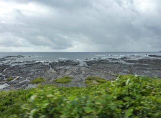 満潮で小岩が見えないほうが大島まで延びた岩の連なりがよく分かる |