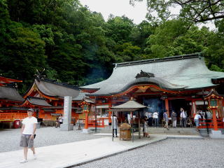 飛龍神社への石段400段を下りる。御神体が那智の滝だそうだ。下りた石段をまた上って道に戻り、新たにまた長い石段を上って、那智大社、青岸渡寺にまわる。この三つの神社と寺の在りよう、宗教的関係はよく分からない。昔、天皇や上皇、貴族たちが熊野詣に熱心だったころからの御物、三種の神器にまつわるものなどが伝えられているらしいが。