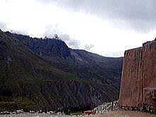 ずいぶんきつい斜面に石を積んで土止めをした段々畑が何段もあって、横の急な石段を300段のぼります。インカ帝国滅亡後に反旗を翻して戦った要塞といわれているそうですが、ここで負けたのではなくて、さらに奥に撤退してしまって、その後どこへ行ったか分からないともいわれているそうです。