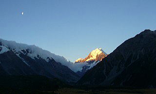 マウント・クックの麓、ハーミテージに到着 このあたりは年間雨量が5000〜6000ミリとか。いつも雲がかかり雨が降ると聞いていました。信じられないこの晴天。有難くてうれしくて、寝るまでカメラを持ってうろつきました。