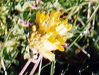 クライネシャイデックに近い丘、黄花のお花畑 向こうにグロースシャイデック(大きい峠)とヴェッターホルン |