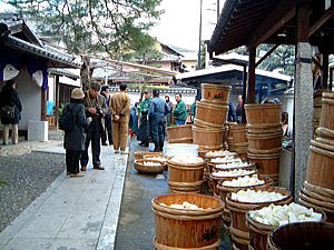 駅前で休憩をかねてお弁当。列車に乗って2駅、出発地の亀岡に戻り、バスに乗って京都市内に入りました。