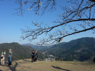 | 分乗して登ってきた車から降りて城跡に取り付くところ |