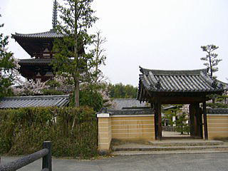 塔と金堂の位置は法隆寺とは逆で、法起寺式伽藍配置と呼ばれるが、この寺も繁栄と衰退を繰り返す運命をたどり、寺域も狭く、往時の面影はない。三重塔も再三にわたって修理を受けたが、ほぼ建立当初の様相をとどめているといわれる。