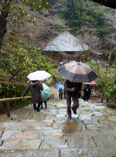 室生寺は建物も仏像も見るべきものが多く、天気がよければ1時間ももらっているのだから、奥の院まで行く人もいるくらいだけれど、今日はさすがに、この雨では、五重塔の下でもういいわと言う人が結構いて、私も、上って来た石段を下りなければならないのも恐いし、この後まわる2ヶ所がどんなところか分からないし、余力を残しておこうと、しばらく休憩所で座って休みました。もったいない感じはしましたが、5ヶ所もまわらないときにゆっくり歩きまわることにします。